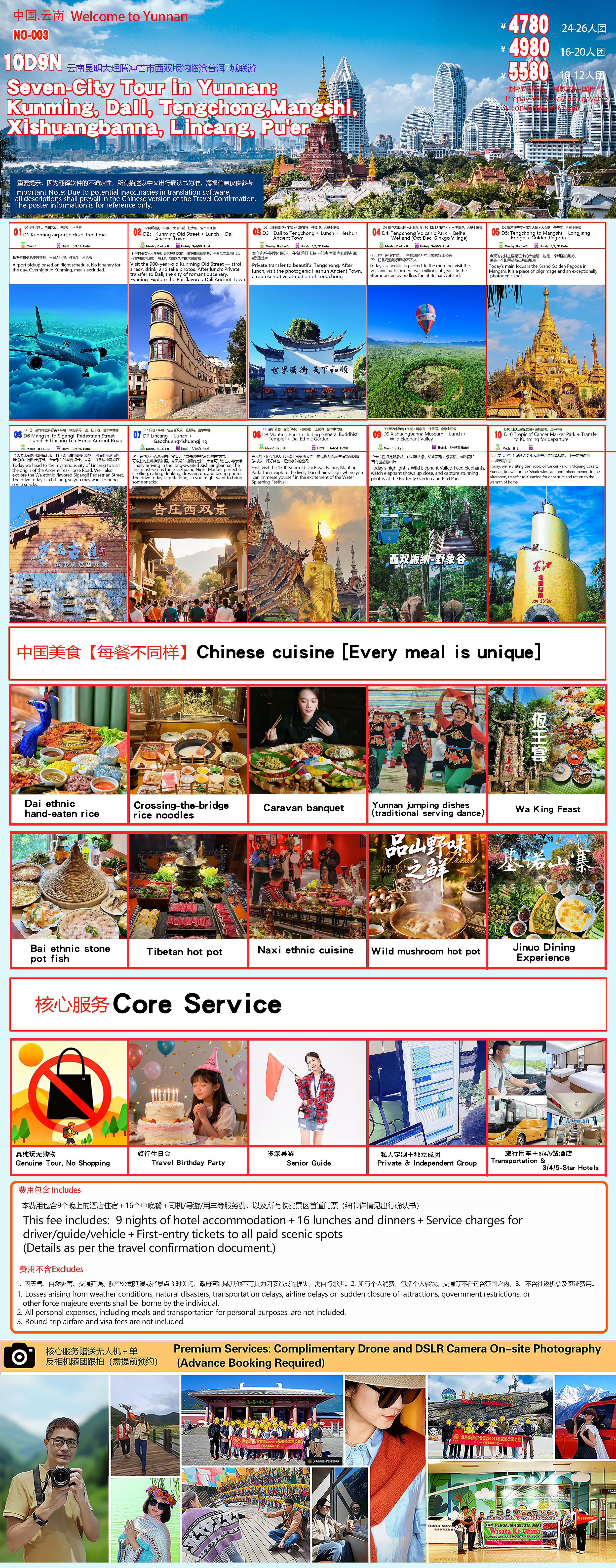 | 3 | 24人 | 4780 | 32+2保姆车 | 司机+中文导游+包餐+摄影师 |