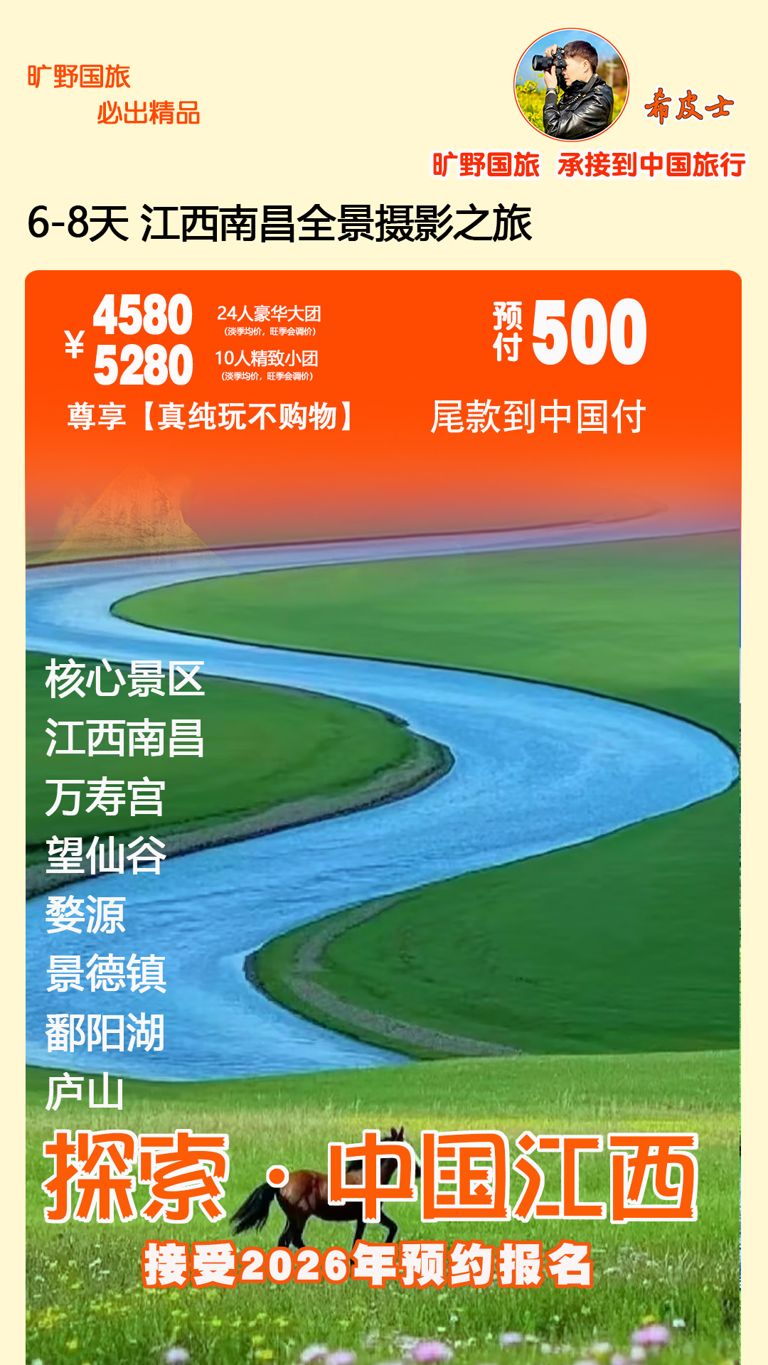 Be the first to review “江西秘境6/8天南昌/望仙谷/婺源/景德镇/鄱阳湖/摄影之旅 NO-019”