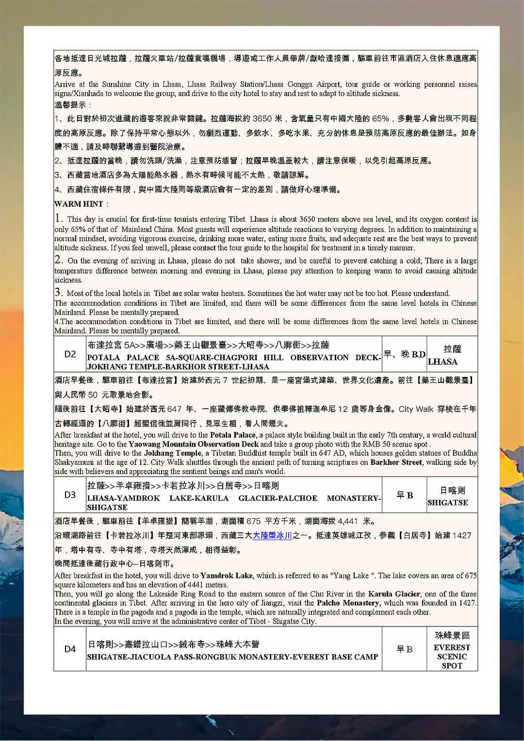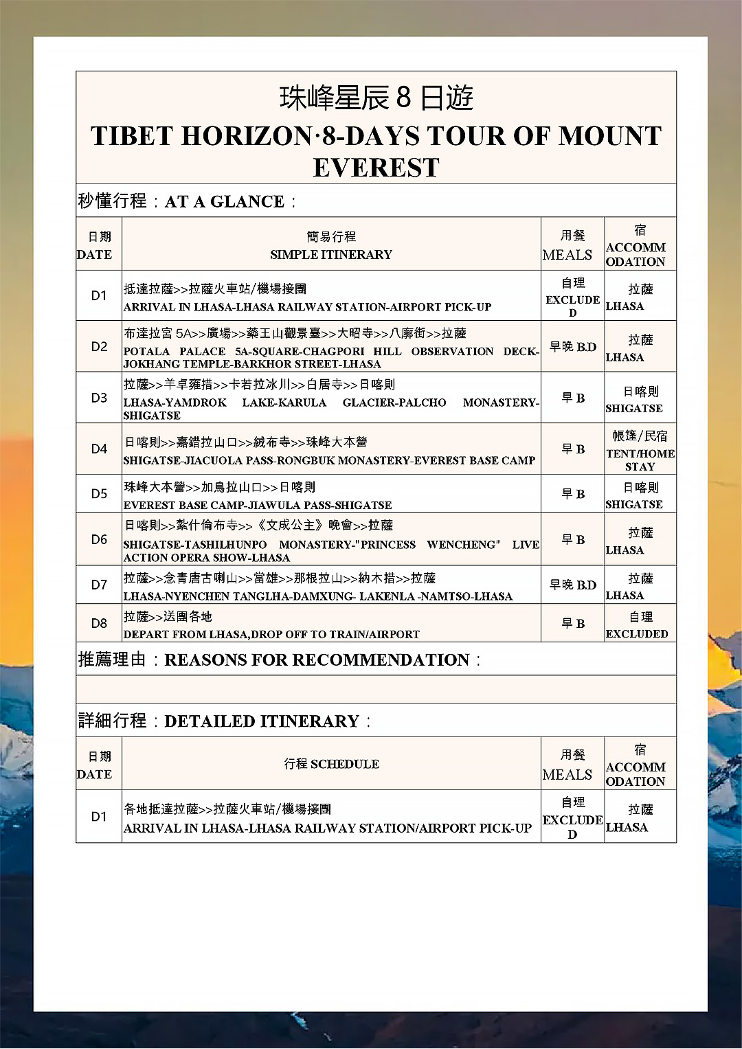 珠峰星辰8日游【拉萨/布宮/羊湖/納木措/珠峰/日喀則】Tib-004