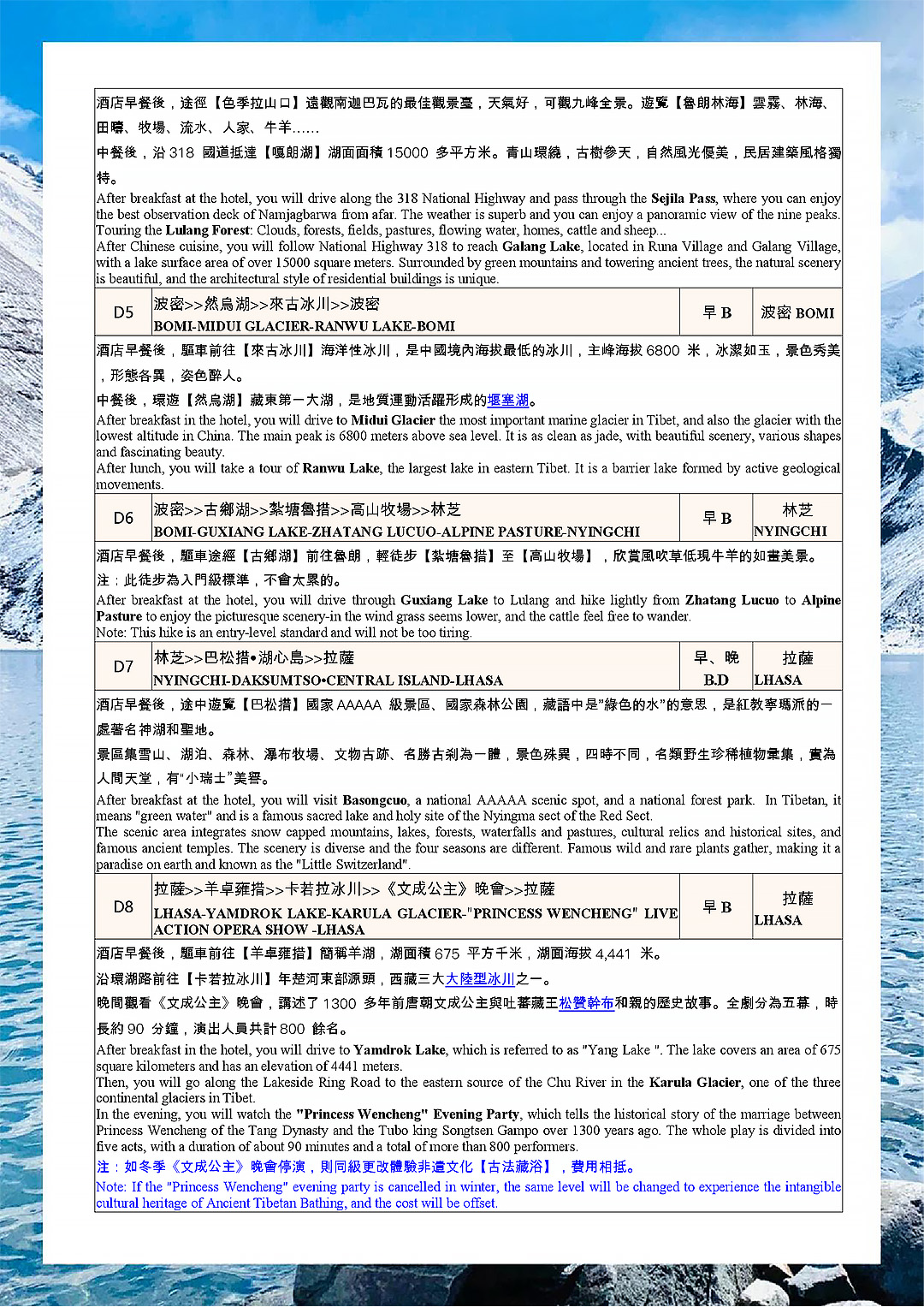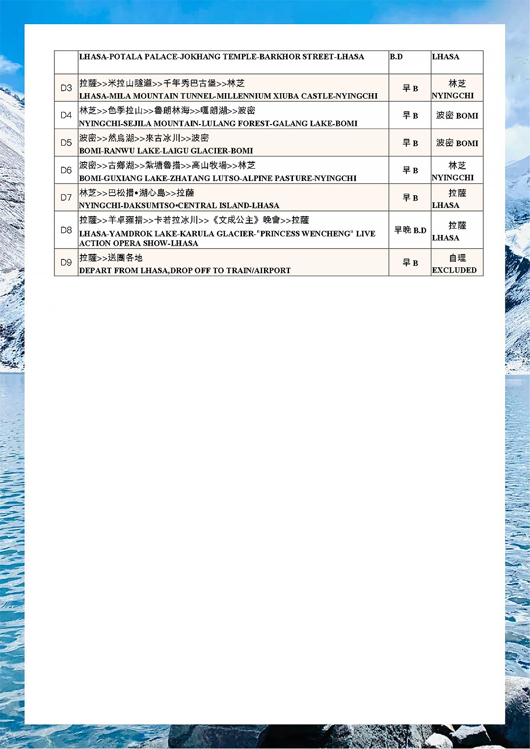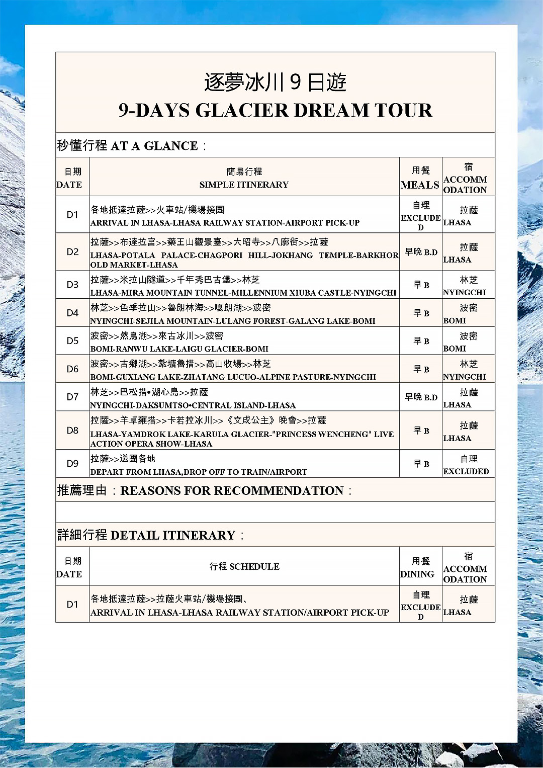 西藏逐梦冰川9日游【拉萨/布达拉宫/林芝/然乌湖/來古冰川/羊湖】Tib-003